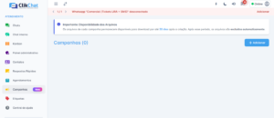 Você será direcionado para a tela de gerenciamento de campanhas, onde poderá criar, editar e acompanhar seus disparos.